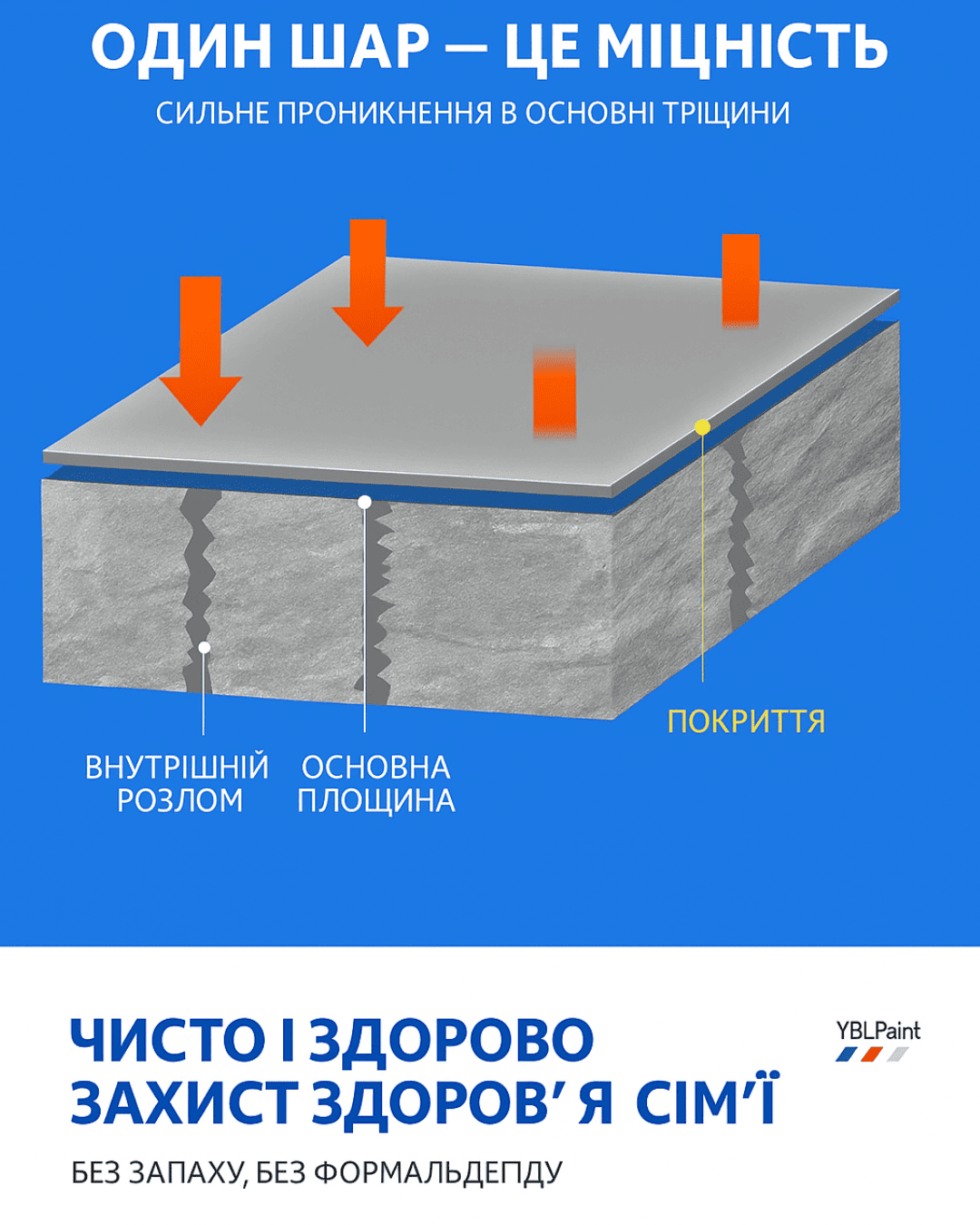 - Глибоке проникнення – надійно ущільнює тріщини й пори